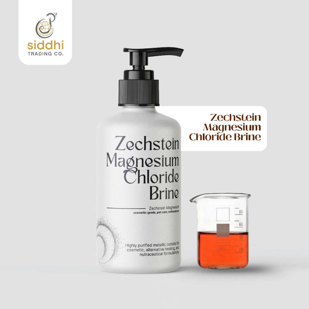 Zechstein Magnesium Chloride Brine is a natural liquid mineral from ancient sea deposits in the Netherlands. Widely used in wellness, spa, and cosmetic products, it is safe, non-DG, and easy to import. Siddhi provides authentic Zechstein-origin brine to spas, contract fillers, and cosmetic brands.
